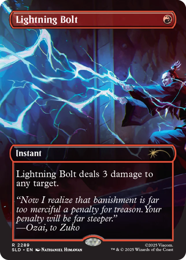 From the Siege of the North to the day of Sozin’s Comet, Avatar: The Last Airbender showed us power at its loudest— Zhao’s arrogance blotting out the moon, Ozai’s fire raining down as Aang stood unbroken in stone, and lightning hurled like judgment at a banished son. Even Bumi, underestimated behind a laugh and a crown, revealed strength that no one saw coming. This Secret Lair drop threads those moments into Magic, where fire, fury, and illusion meet endurance, balance, and the reminder that not all strength looks the same.